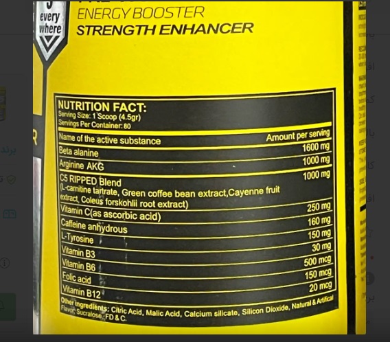 یک پیمانه (4.5 گرم) در 200 میلی لیتر آب مخلوط کرده و 30-20 دقیقه قبل از تمرین بنوشید. در هنگام مصرف مکمل از مصرف مواد کافئینی و محرک تا 6 ساعت خودداری نمایید.