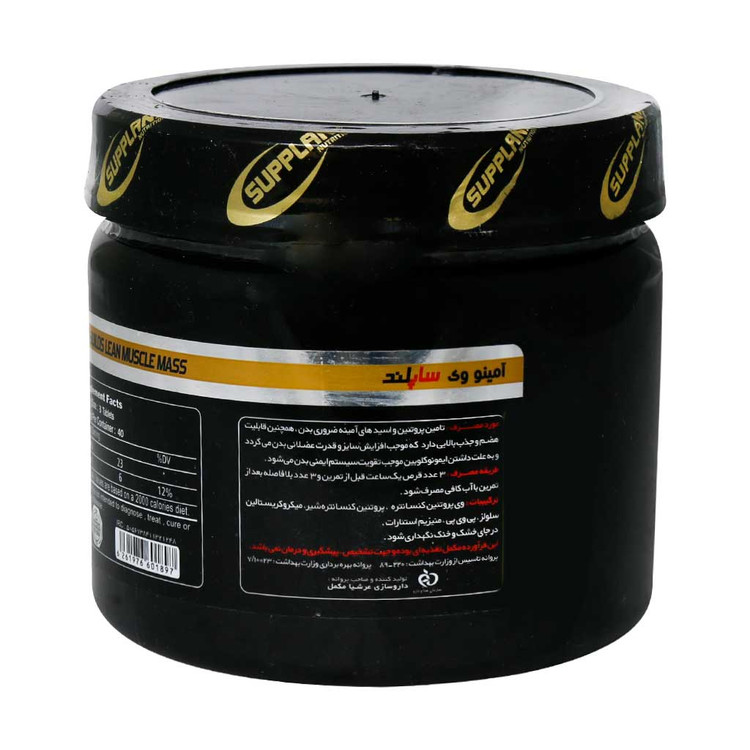 قرص آمینو وی ساپلند تحت تکنولوژی پیشرفتهای فرموله شده و حاوی پروتئین وی و 18 نوع مختلف از آمینو اسیدها است. 8 مورد از این اسیدهای آمینه ضروری هستند. به این معنا که بدن قابلیت تولید آنها را ندارد بنابراین باید از طریق مصرف مواد غذایی تامین شوند. این فرآورده به سرعت جذب بدن شده و قابلیت هضم مناسبی نیز دارد. دستور مصرف به این شکل است که 3 عدد قرص قبل و 3 عدد قرص بعد از تمرینات ورزشی باید مورد استفاده قرار گیرد. در هر سروینگ شما میتوانید 6 گرم پروتئین را دریافت کنید که این مقدار 12% از نیاز روزانه بدن را تامین خواهد کرد. افزایش حجم و قدرت عضلانی مهمترین مزیت استفاده از این مکمل ورزشی است. استفاده از این محصول همچنین سبب میشود تا پس از انجام تمرینات به ریکاوری عضلات کمک شود و درد عضلانی نیز کاهش یابد. این قرص حاوی ایمونوگلوبین بوده و در تقویت سیستم ایمنی نیز موثر عمل میکند.