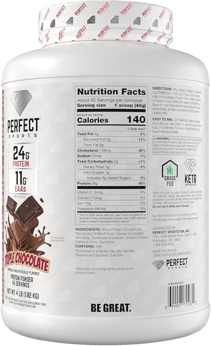 اسیدهای آمینه چیزی هستند که هر پروتئینی از آن ساخته شده است. پروتئین ULTRA FUEL یک پروتئین ۱۰۰٪ کامل است که سرشار از EAA (اسیدهای آمینه ضروری) است. در تولید پروتئین وی فول الترا از میکروفیلتراسیون جریان متقاطع در دمای سرد استفاده شده تا پروتئین را به طور موثری تغلیظ کند و در عین حال شکل و عملکرد اصلی آن را حفظ کند و دارای 24 گرم پروتئین خالص و کمتر از ۲ گرم کربوهیدرات، و همچنین 11 گرم EAA است است و پروتئینی مابین پروتئین وی کنستانتره و پروتئین وی ایزوله میباشد و انتخاب عالی برای تسریع در ساخت عضله میباشد.