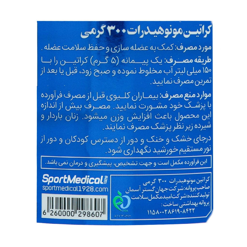 پودر کراتین مونوهیدرات اسپرت مدیکال :